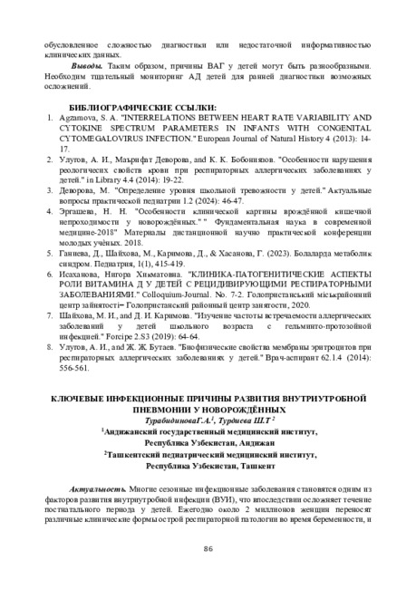 Эргашева, Н. Н. "Особенности клинической картины врождённой кишечной