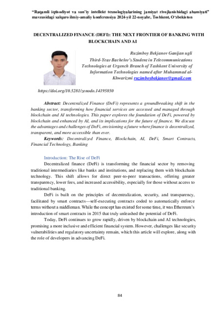 Keywords: Decentralized Finance, Blockchain, AI, DeFi, Smart Contracts,