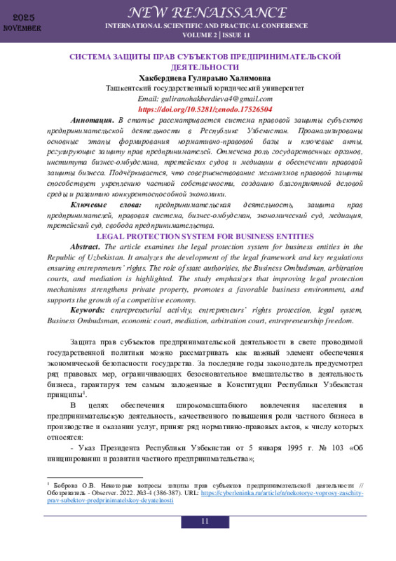 ensuring entrepreneurs’ rights. The role of state authorities, the Business Ombudsman, arbitration
