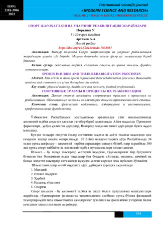 Мазкур мақолада Спорт жароҳатлари ва уларнинг реабилитация