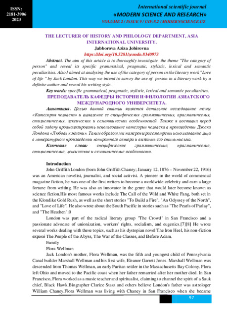 of life " by Jack London. This way we intend to survey the use of person in a literary work by a