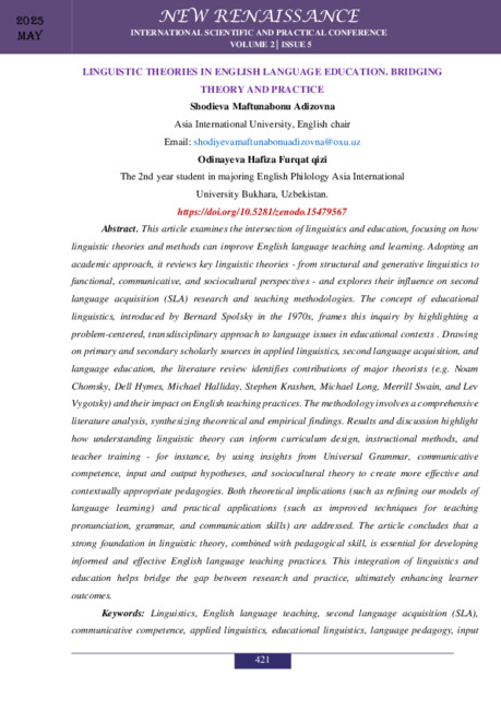 This article examines the intersection of linguistics and education, focusing on how linguistic theories and methods can improve English language teaching and learning. Adopting an academic approach, it reviews key linguistic theories - from structural and generative linguistics to functional, communicative, and sociocultural perspectives - and explores their influence on second language acquisition (SLA) research and teaching methodologies. The concept of educational linguistics, introduced by Bernard Spolsky in the 1970s, frames this inquiry by highlighting a problem-centered, transdisciplinary approach to language issues in educational contexts . Drawing on primary and secondary scholarly sources in applied linguistics, second language acquisition, and language education, the literature review identifies contributions of major theorists (e.g. Noam Chomsky, Dell Hymes, Michael Halliday, Stephen Krashen, Michael Long, Merrill Swain, and Lev Vygotsky) and their impact on English teaching practices. The methodology involves a comprehensive literature analysis, synthesizing theoretical and empirical findings. Results and discussion highlight how understanding linguistic theory can inform curriculum design, instructional methods, and teacher training - for instance, by using insights from Universal Grammar, communicative competence, input and output hypotheses, and sociocultural theory to create more effective and contextually appropriate pedagogies. Both theoretical implications (such as refining our models of language learning) and practical applications (such as improved techniques for teaching pronunciation, grammar, and communication skills) are addressed. The article concludes that a strong foundation in linguistic theory, combined with pedagogical skill, is essential for developing informed and effective English language teaching practices. This integration of linguistics and education helps bridge the gap between research and practice, ultimately enhancing learner outcomes.