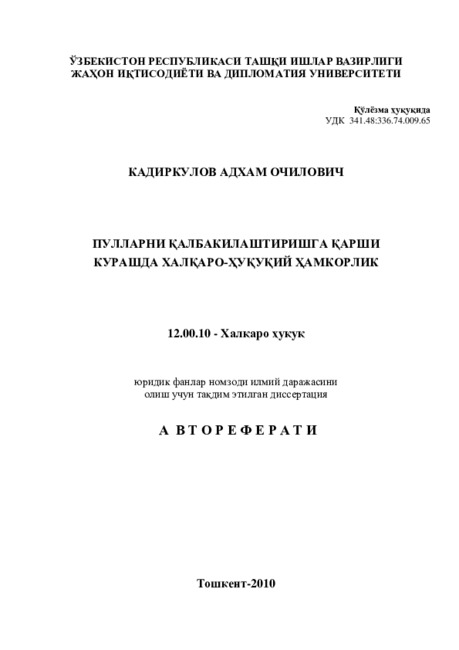 Степень внедрения и экономическая эффективность: результаты научного исследования, предложения и рекомендации могут быть использованы в деятельности государственных органов по борьбы против фальшивомонетничества и для совершенствования национального законодательства. Выводы, полученные в данной работе, могут быть учтены при создании учебников и пособий.