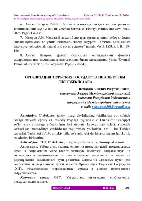 11. Узбекистан, как часть исламского мира, стремящийся установить практическое и выгодное взаимодействие с арабско-мусульманскими странами в культурно-образовательных, политически-экономических сферах, а также другие страны Центральной Азии заинтересованы в получении целостного и единого представления о социально-политических процессах в исламском мире, масштабах внутренней и внешней политики, их опыта борьбы против религиозного экстремизма и политического ислама.