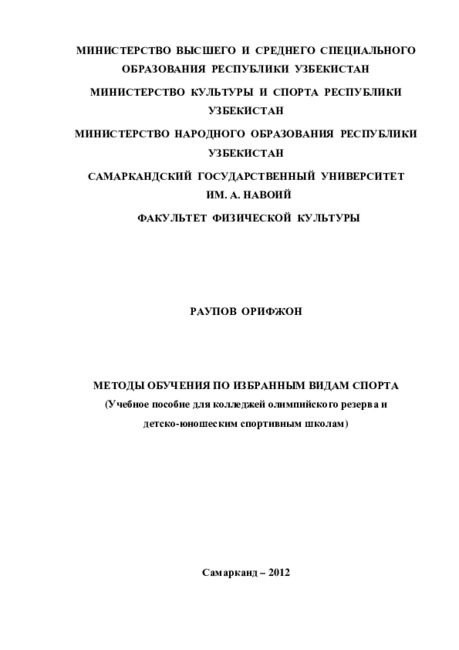 Область применения: учебно-тренировочный процесс спортсменов, обучающихся в вузах спортивно-педагогического профиля.