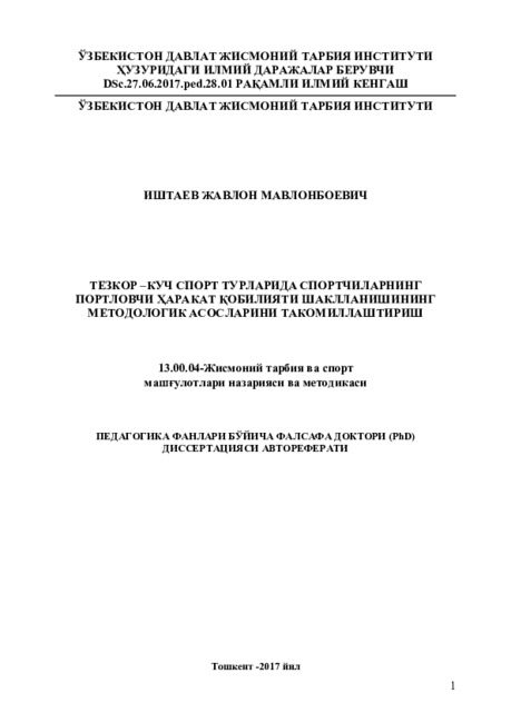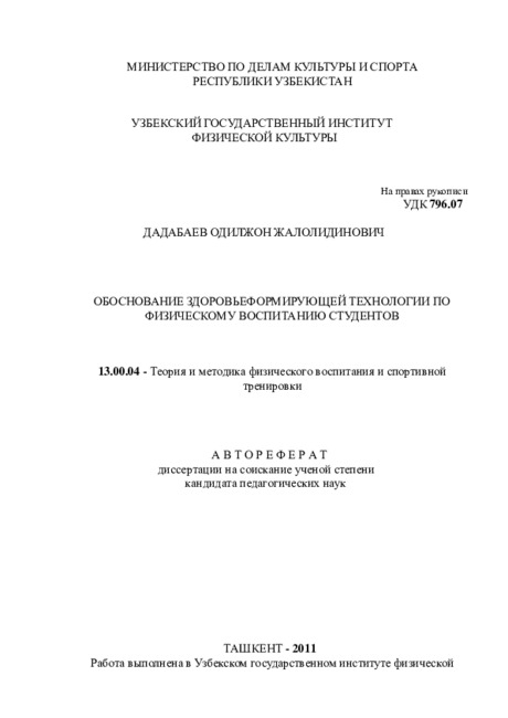 Степень внедрения и экономическая эффективность: результаты исследований включены в лекционный курс «Теория и методика физического воспитания» в УзГИФК и в учебный процесс профессионального колледжа.