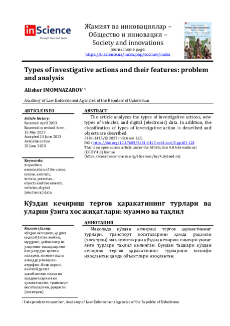 Мақолада кўздан кечириш тергов ҳаракатининг