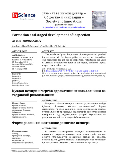 Мақолада кўздан кечириш тергов ҳаракатининг пайдо