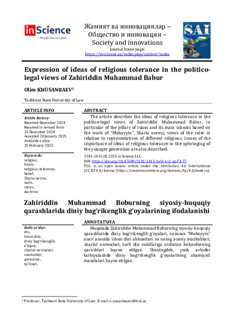 Maqolada Zahiriddin Muhammad Boburning siyosiy-huquqiy