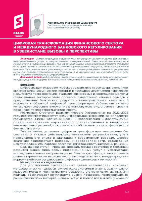Mazkur maqolada raqamli transformatsiya sharoitida O‘zbekistonda moliyaviy