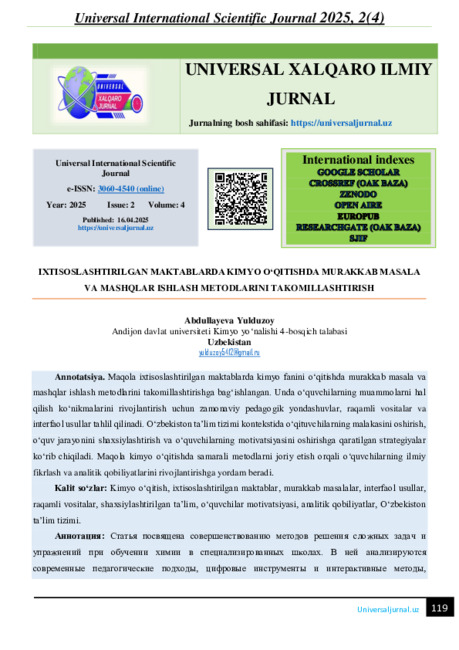 № 4 (2025) UNIVERSAL XALQARO ILMIY JURNAL