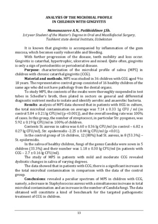of the Tashkent state dental Institute, in 2016-2019. and 30 children without
