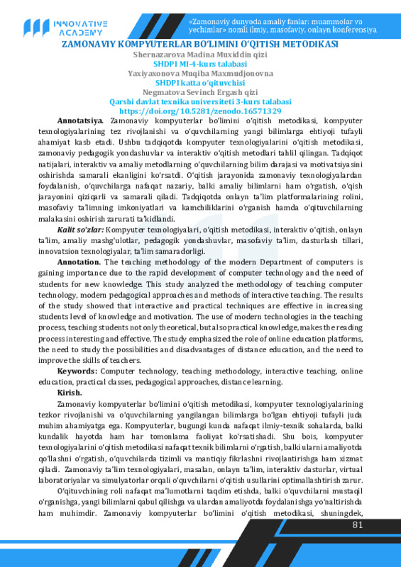 № 11 (2025) Прикладные науки в современном мире: проблемы и решения