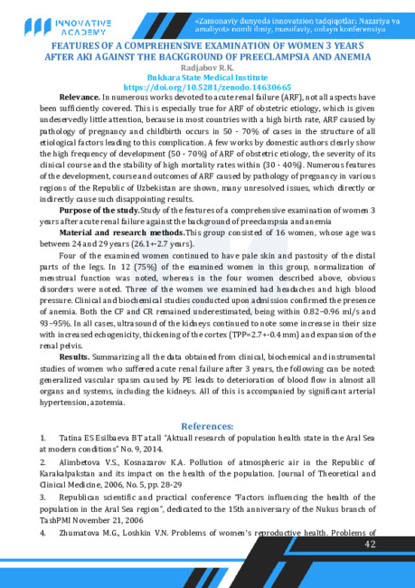 AFTER AKI AGAINST THE BACKGROUND OF PREECLAMPSIA AND ANEMIA