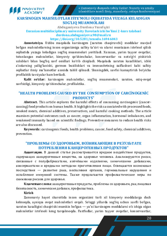 va salomatlik uchun xavflari ilmiy asosda tahlil qilinadi. Shuningdek, ushbu mahsulotlardan