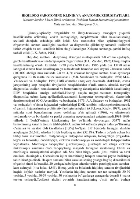 haqida ko'plab nashrlar mavjud. Yoshlarda hiqildoq saraton tez-tez uchraydi: 30-39