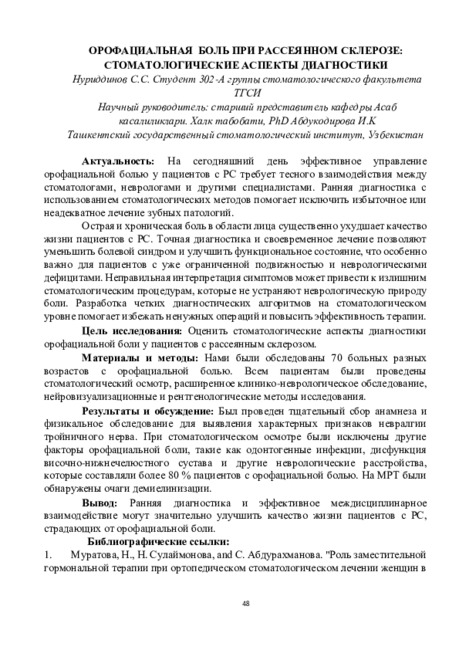 ОРОФАЦИАЛЬНАЯ БОЛЬ ПРИ РАССЕЯННОМ СКЛЕРОЗЕ: