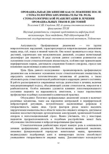ОРОФАЦИАЛЬНАЯ ДИСКИНЕЗИЯ КАК ОСЛОЖНЕНИЕ ПОСЛЕ