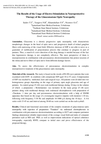 following with percutaneous electrostimulation in complex treatment of glaucomatous optic