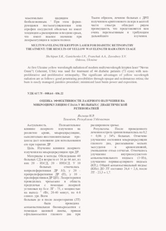 Оценка эффективности лазерного излучения на микроциркуляцию глаза у больных с диабетической ретинопатией