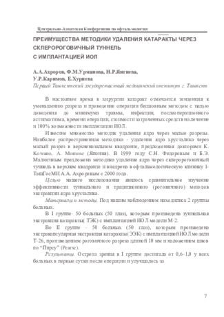 ПРЕИМУЩЕСТВА МЕТОДИКИ УДАЛЕНИЯ КАТАРАКТЫ ЧЕРЕЗ
