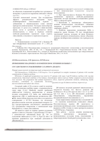 were assessed. The preparation had marked hypotensive effect, improved glomerular nitration, influencing insulin