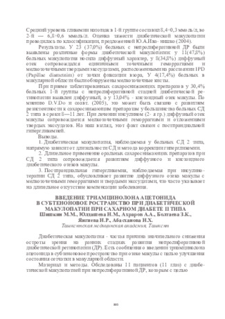 Результаты. Введение триамцинолона ацетонида больным с диабе-