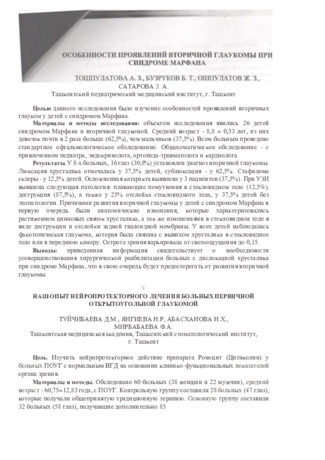 эхопатологии. Причинами развития вторичной глаукомы у детей с синдромом Марфана в