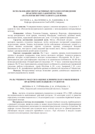 курсов по теме «Патология внутриглазного давления» с использованием интерактивных