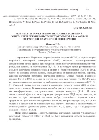 Янгиева, Н. (2019). Результаты эффективности лечения больных с сочетанием первичной открытоугольной глаукомы и возрастной макулярной дегенерации. in Library, 19(2), 233–236. извлечено от https://inlibrary.uz/index.php/archive/article/view/14668