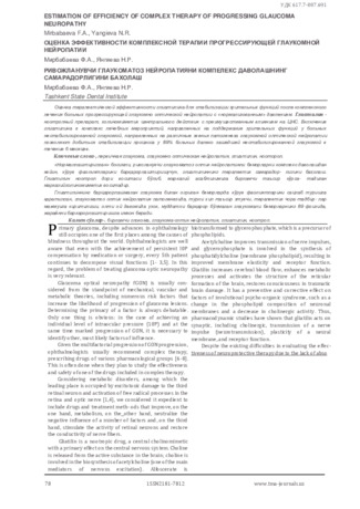 Ривожланувчи глаукоматоз нейропатияни компелекс даволашнинг самарадорлигини бахолаш