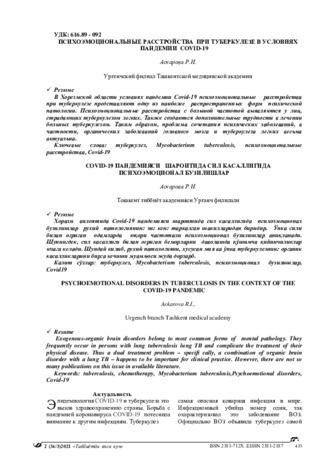19 пандемияси шароитида сил касаллигида психоэмоционал