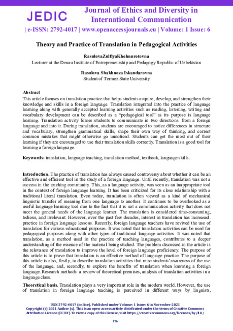 Theory and Practice of Translation in Pedagogical Activities