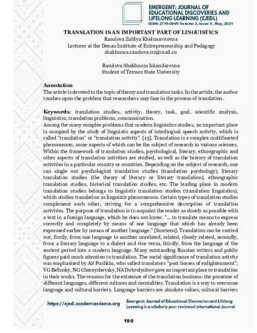 TRANSLATION IS AN IMPORTANT PART OF LINGUISTICS