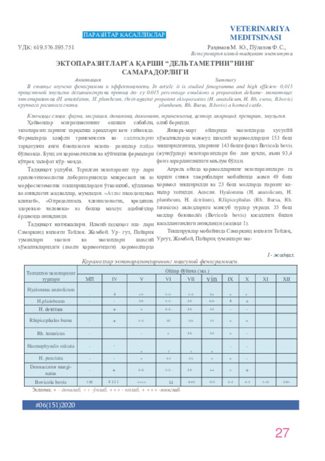 ЭКТОПАРАЗИТЛАРГА ҚАРШИ “ДЕЛЬТАМЕТРИИ”НИНГ