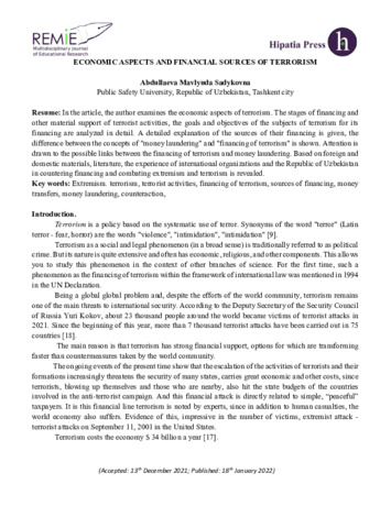 ECONOMIC ASPECTS AND FINANCIAL SOURCES OF TERRORISM
