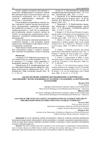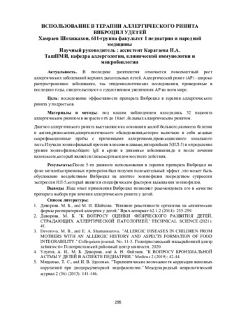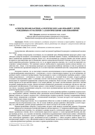 • Патология детского возраста всегда остаётся актуальной проблемой в меди­цине и поэтому в нашей работе отражены аспекты аллергии у детей с отягощённой наследствен­ностью опираясь на литературные данные.