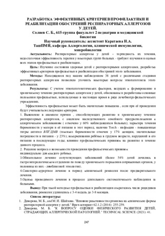 • Респираторные аллергозы у детей - торпидность их течения, недостаточная эффективность терапии у некоторых групп больных - требуют изучения и оценки всех этапов профилактики и реабилитации.