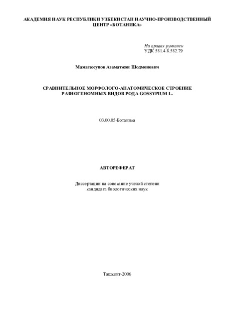 Область применения: анатомия, морфология, систематика, генетика и интродукция рода Gossypium L.