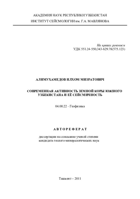 Полученные результаты и их новизна: составлены новые и оцифрованы имеющиеся карты показателей современной активности земной коры и создана их база данных; выявлены взаимосвязи интегральных показателей современной активности земной коры, а также их с сейсмичностью; построена новая карта современной активности земной коры Южного Узбекистана.