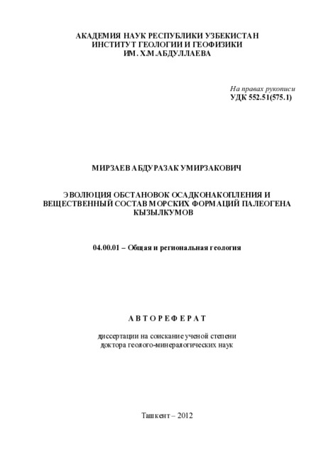 Цель работы: комплексное изучение условий осадконакопления и вещественного состава осадочных формаций палеогена Кызылкумов с выделением основных этапов эволюции осадочного бассейна, установлением закономерностей смены фациальных единиц во времени и пространстве и выявлением генетической связи с ними формирования месторождений полезных ископаемых.