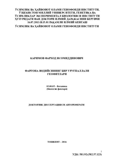 7. Таксономический, ботанико-географический и фитоценологический анализы позволили установить, что Ферганская долина, является одним из современных очагов видообразования Allium, Gagea, Tulipa, где более 68% видов являются автохтонными элементами флоры Горносреднеазиатской провинции.
