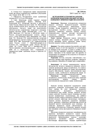 The article analyzes the scientific and methodological issues of civil law regulation of compensation for damage to the consumer. It covers a number of func- tions of civil law: regulation, protection, safeguarding, protection, restoration of the violated right, the specifics of compensation for damage to the consumer on the basis of compensatory analysis.