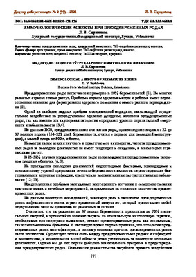 • Изучение клеточного и гуморального иммунитета у недоношенных детей. Материал и методы. 90 недоношенных детей родились в сроке гестации 28-37 недель. Методы исследования иммунологические, статистические. Результаты. Состояние иммунной системы у недоношенных детей напрямую зависит от срока беременности чем короче срок гестации, тем более выражены проявления снижения звеньев иммунного статуса. Заключение. Дефицит иммуноглобулина А обусловлен незрелостью недоедающих детей, а также прямым влиянием его действия на поджелудочную железу.