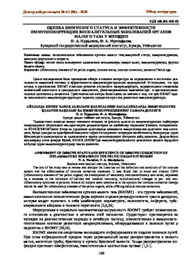 • Целью исследования было проведение обзора и анализа литературы по определению и состоянию деятельности иммунной системы и эффективности иммунокоррегирующих мероприятии. Установлено, что при острых и хронических ВЗОМТ отмечали развитие вторичного иммунодефицита, выражающиеся снижением показателей клеточного и гуморального иммунитета, разнонаправленном изменении про- и противовоспалительных цитокинов у пациенток. Практически все авторы были едины во мнении о том, что при ВЗОМТ нужно использовать иммунокоррегируюшую терапию, предлагая при этом различные иммунокорректоры.
