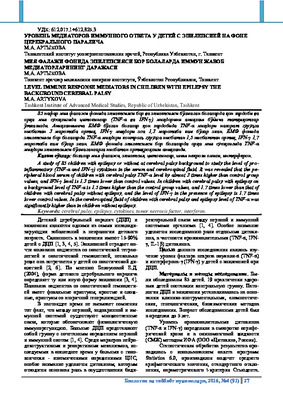 • Проведено обследование 85 детей с эпилепсией или без нее на фоне детского церебрального паралича с целью изучения уровня провоспалительных (ФНО-α и ИФН-γ) цитокинов в сыворотке крови и спинномозговой жидкости. Выявлено, что в сыворотке периферической крови детей с детским церебральным параличом уровень ФНО-α почти в 3 раза превышает показатели контрольной группы, а уровень ИФН-γ ниже контрольных значений в 1,3 раза. У детей с ДЦП на фоне эпилепсии уровень ФНО-α в 1,5 раза превышает показатели контрольной группы и в 1,7 раза ниже, чем у детей с ДЦП без эпилепсии, а уровень ИФН-γ на фоне эпилепсии в 1,7 раза ниже контрольных значений. В спинномозговой жидкости детей с ДЦП и эпилепсией уровень ФНО-α достоверно выше, чем у детей без эпилепсии.