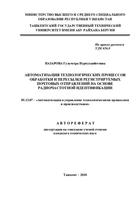 Цель работы: разработка системы автоматизации управления и пакета прикладных программ для обеспечения управления, учета и контроля регистрируемых почтовых отправлений на основе радиочастотной идентификации.