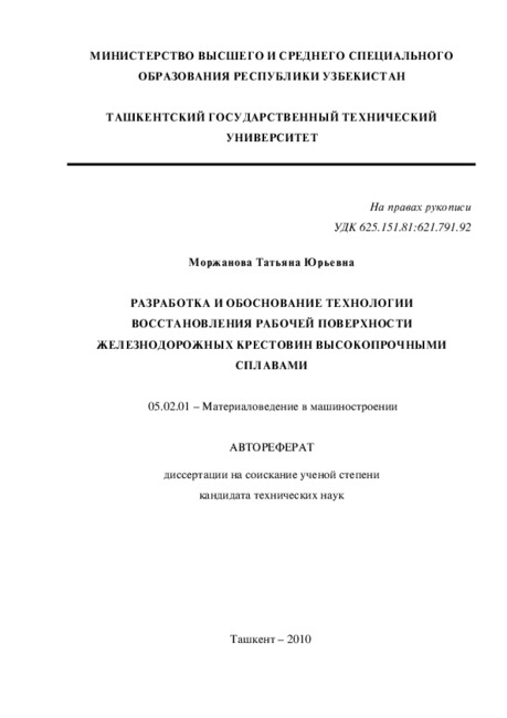 Метод исследования: теоретическое и экспериментальное изучение структуры и свойств высокопрочных сплавов при восстановлении, металлографические исследования.