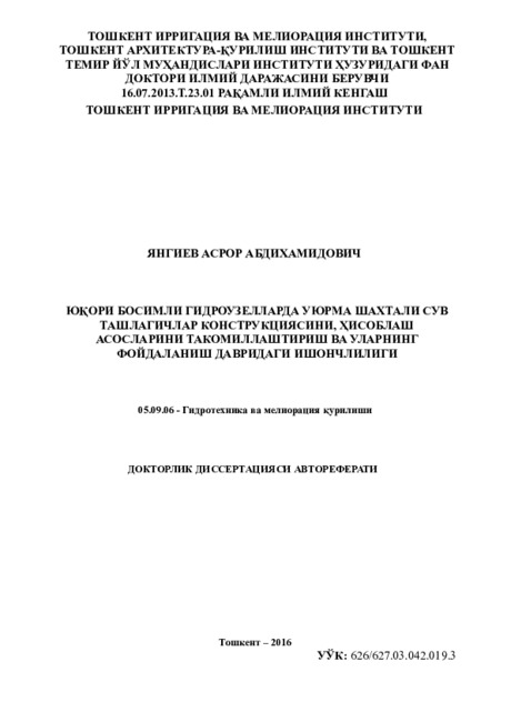 Результаты проведенных исследований докторской диссертации на тему: «Совершенствование конструкций, расчетного обоснования и эксплуатационной надежности вихревых шахтных водосбросов высоконапорных гидроузлов» следующие: