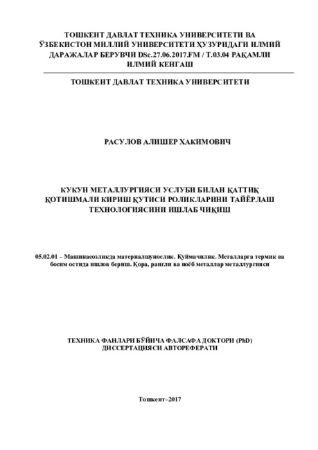 Практическая значимость: практическое использование разработанной технологии осуществлено в РСП-14 ГАЖК «Узбекистан темир йўллари», где технология внедрена в производство.